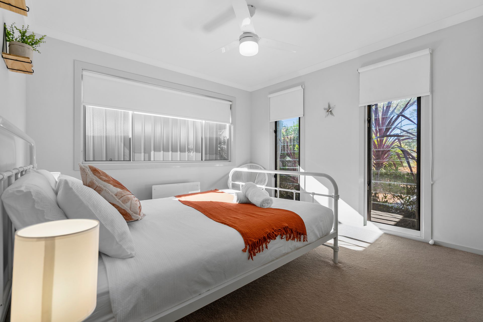 - Bed 2: Queen bed, ceiling fan and built-in wardrobe, panel heater.