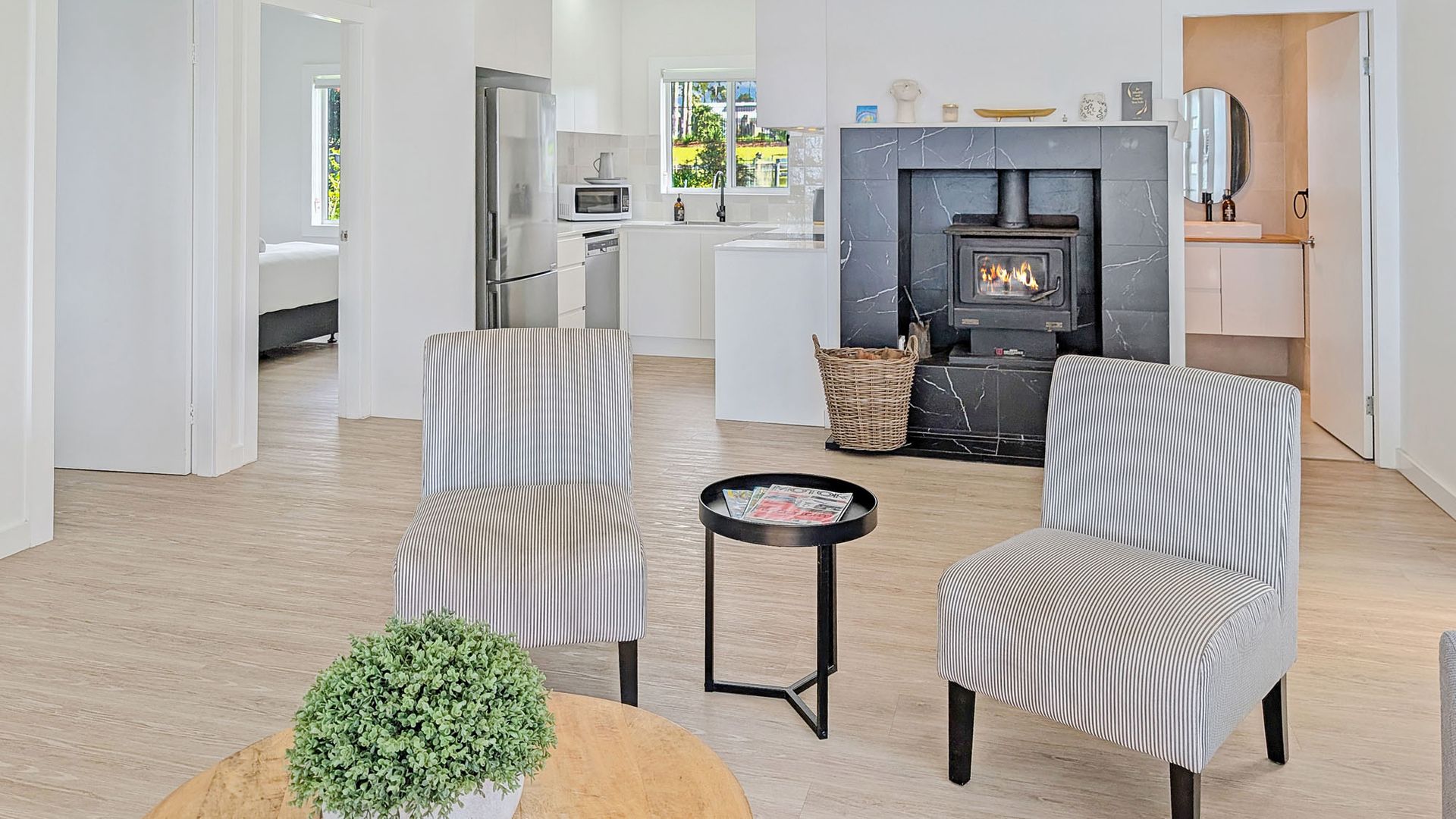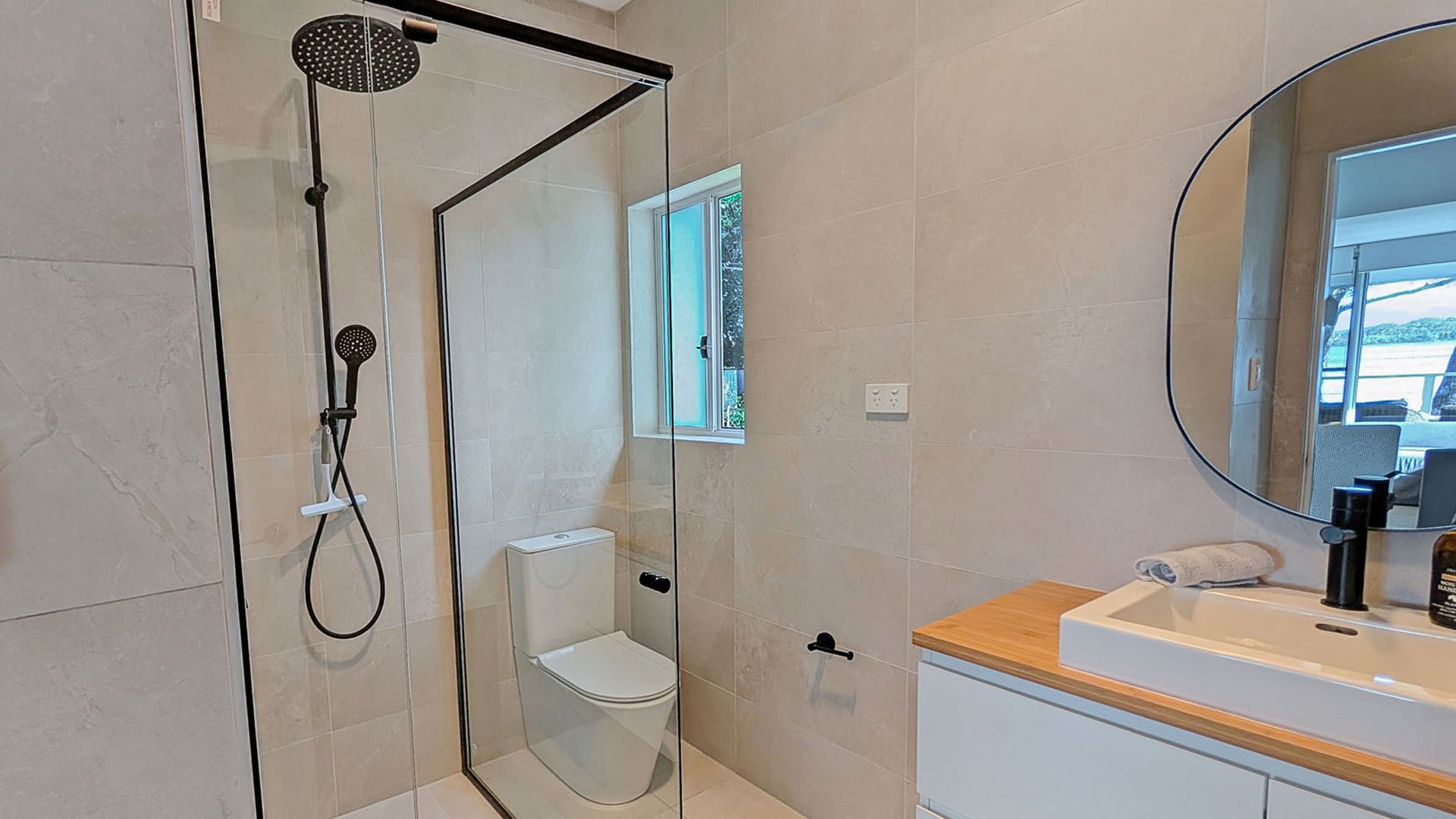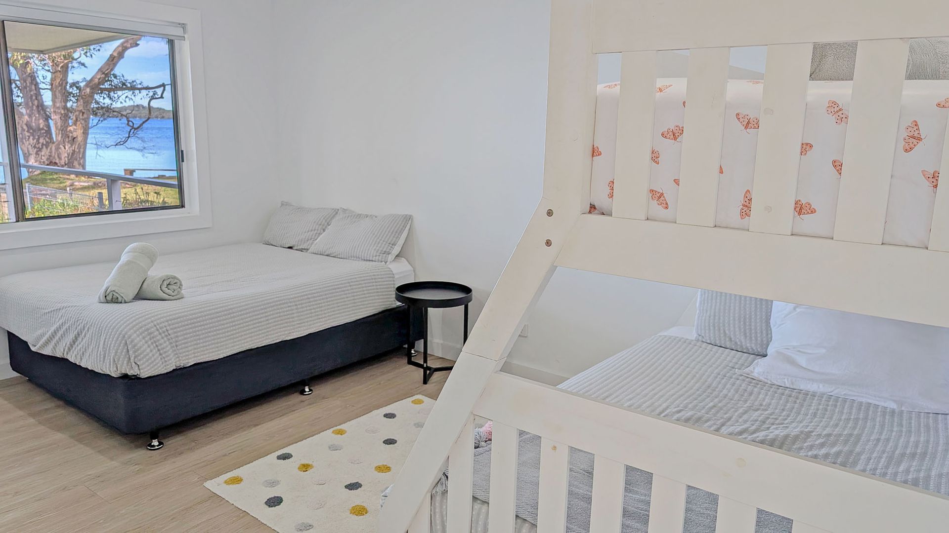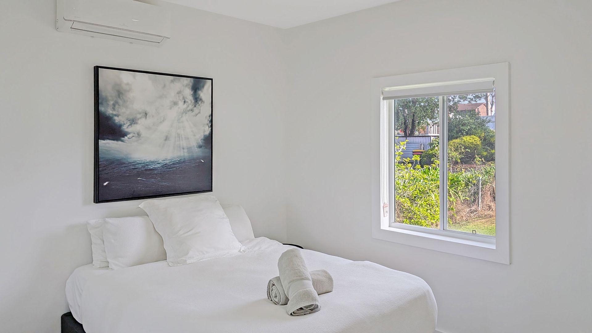 - Bed 1: Queen bed with reverse cycle air conditioning and built-in wardrobe
