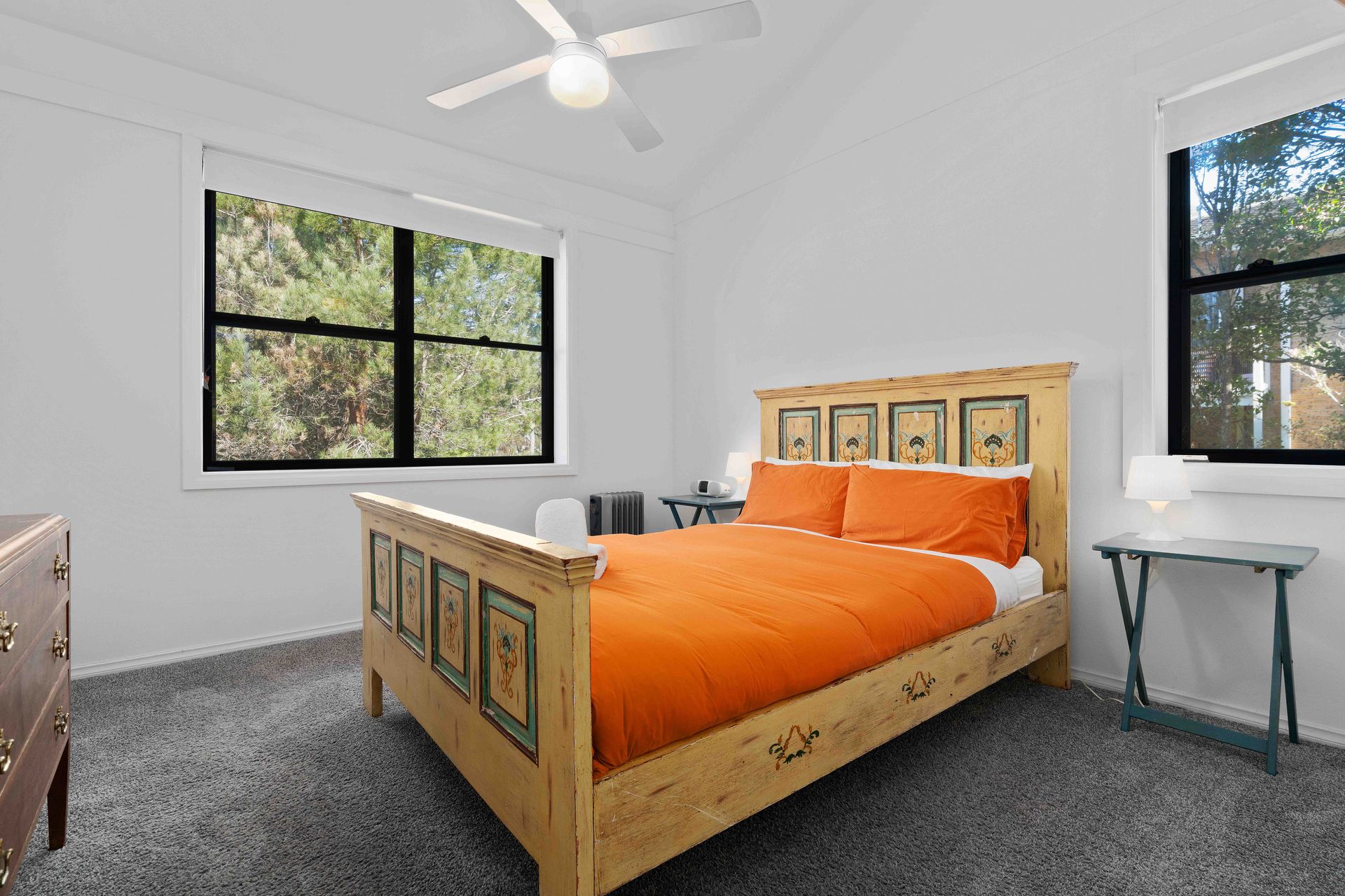 • Bed 3: Queen bed with pedestal fan and portable heater and free standing drawers