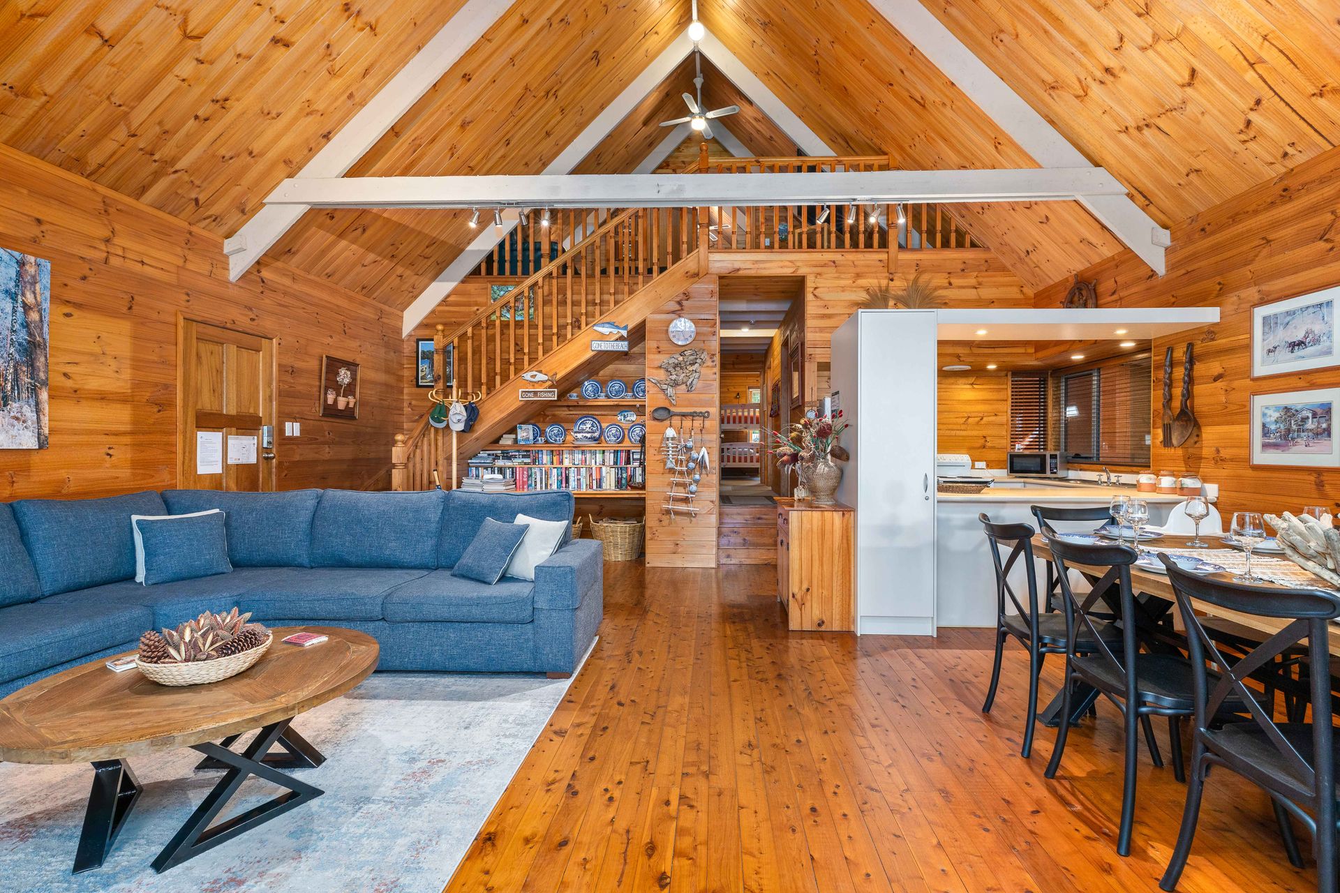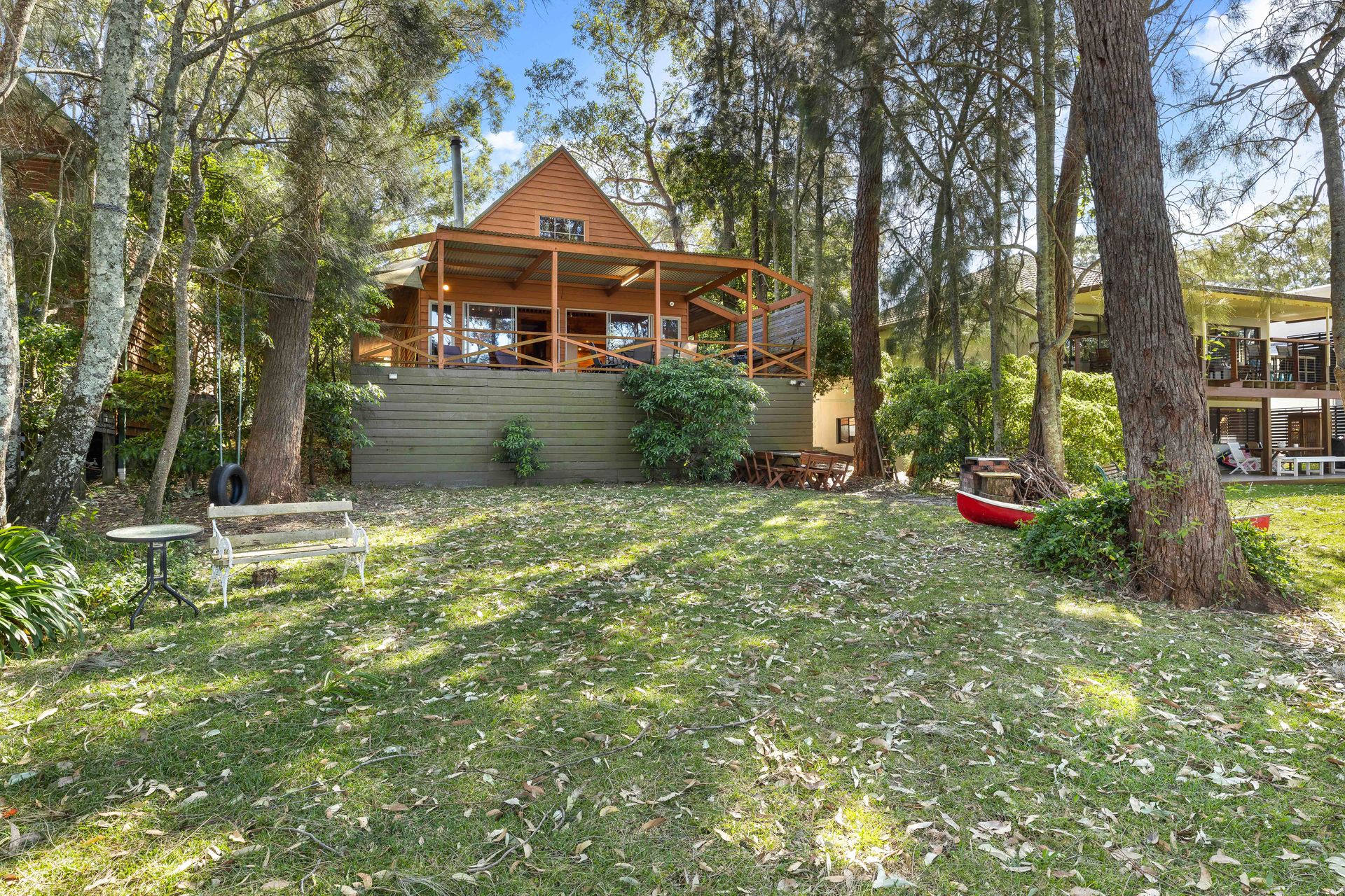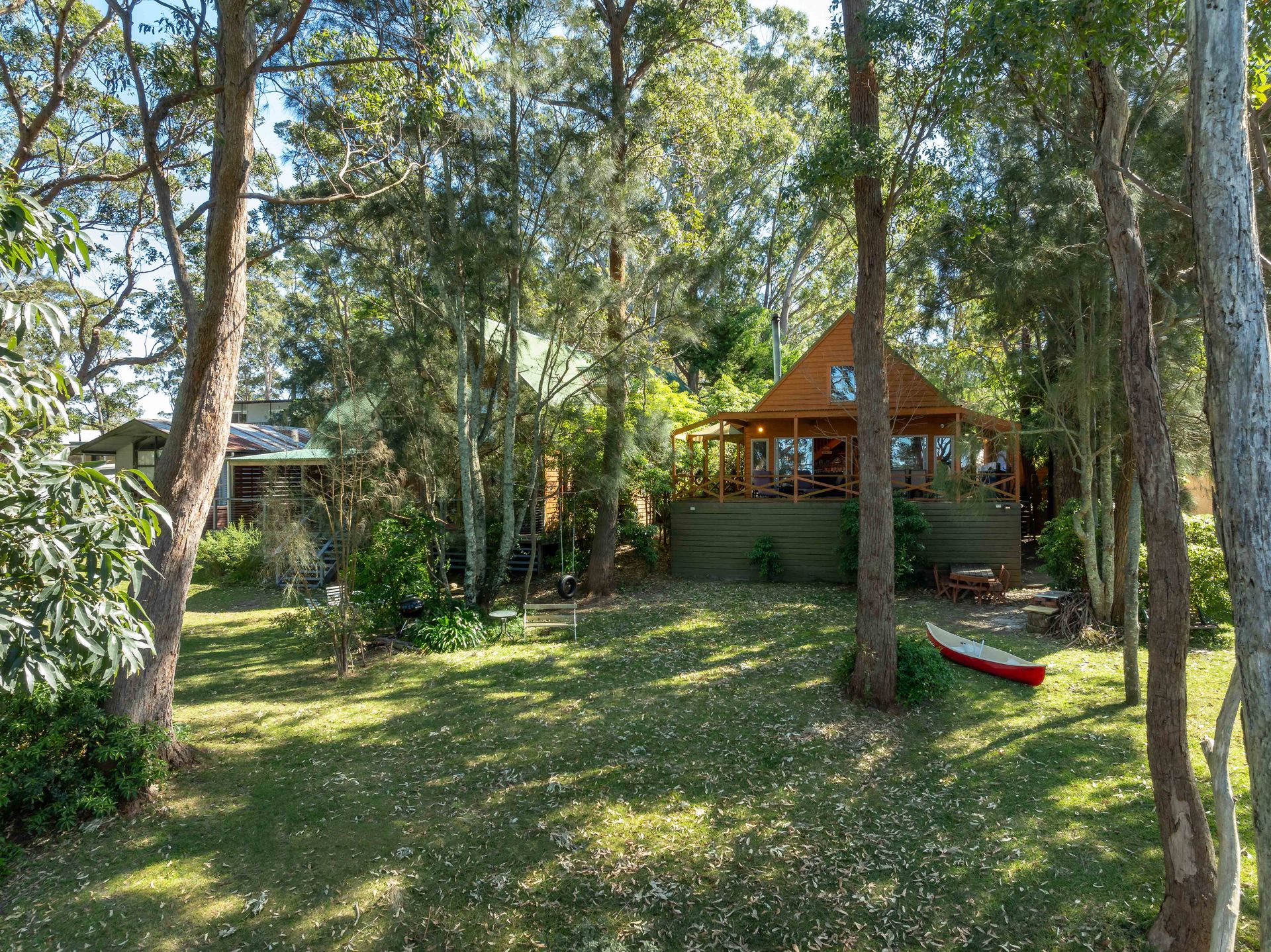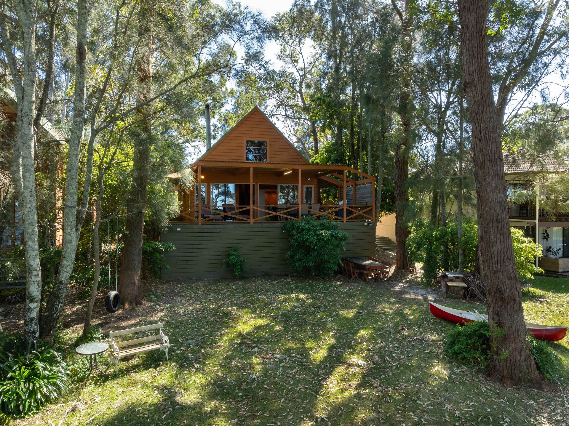 ‘Halcyon’ is a charming four-bedroom cedar home offering stunning views of St Georges Basin. This serene country escape is named for its tranquil ambiance, where the only sounds you'll hear are kangaroos hopping by and the gentle lapping of waves.