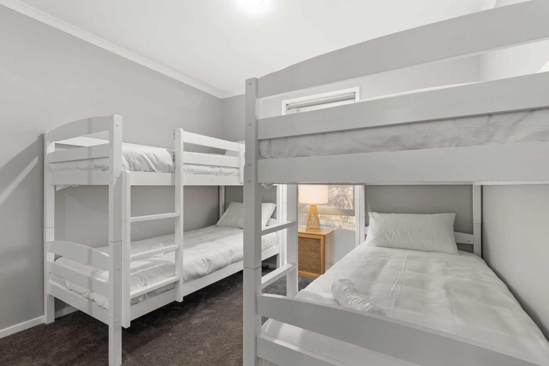 - Bed 4: Single bunks x 2 with portable fan/heater and built-in wardrobe