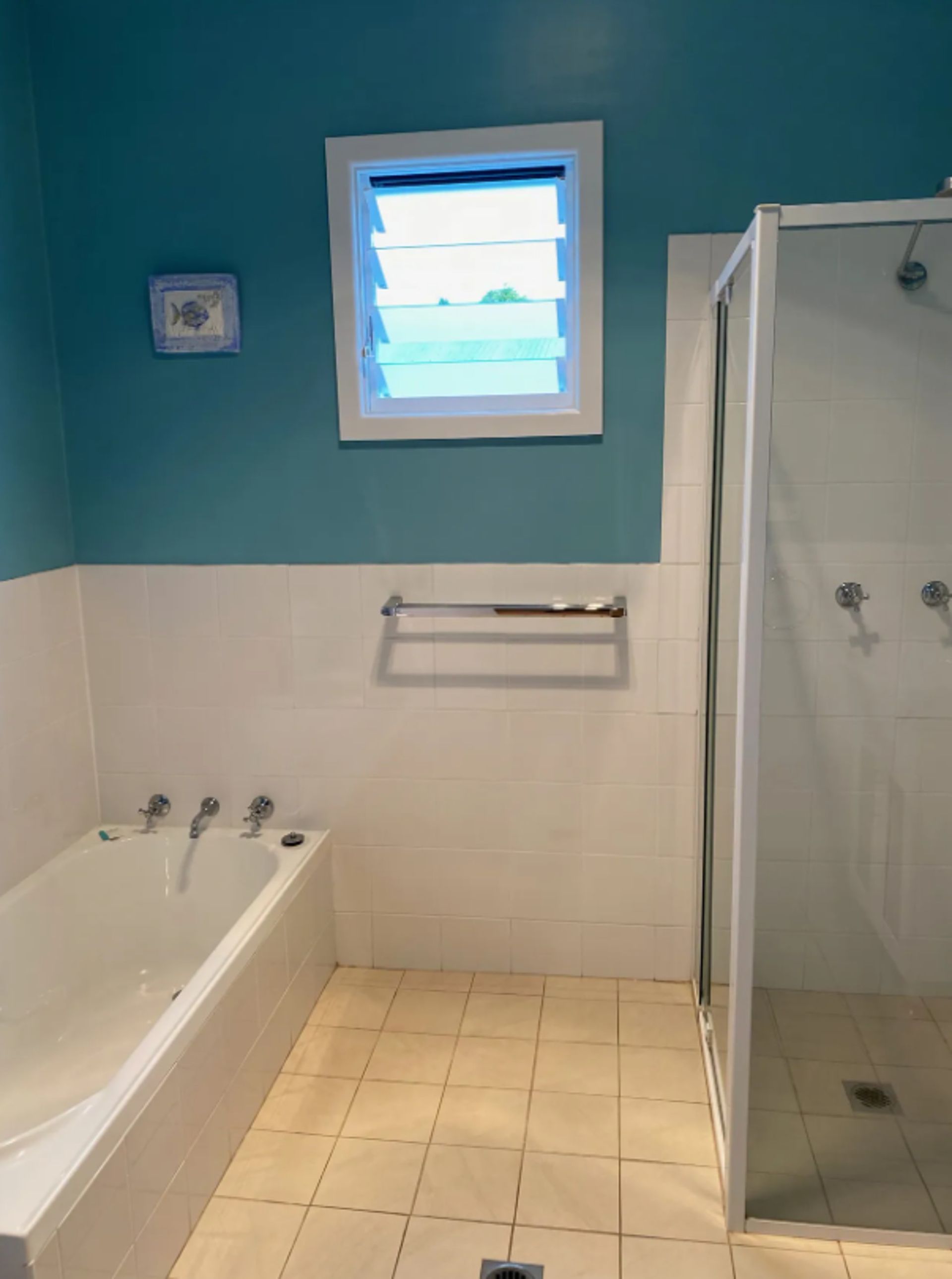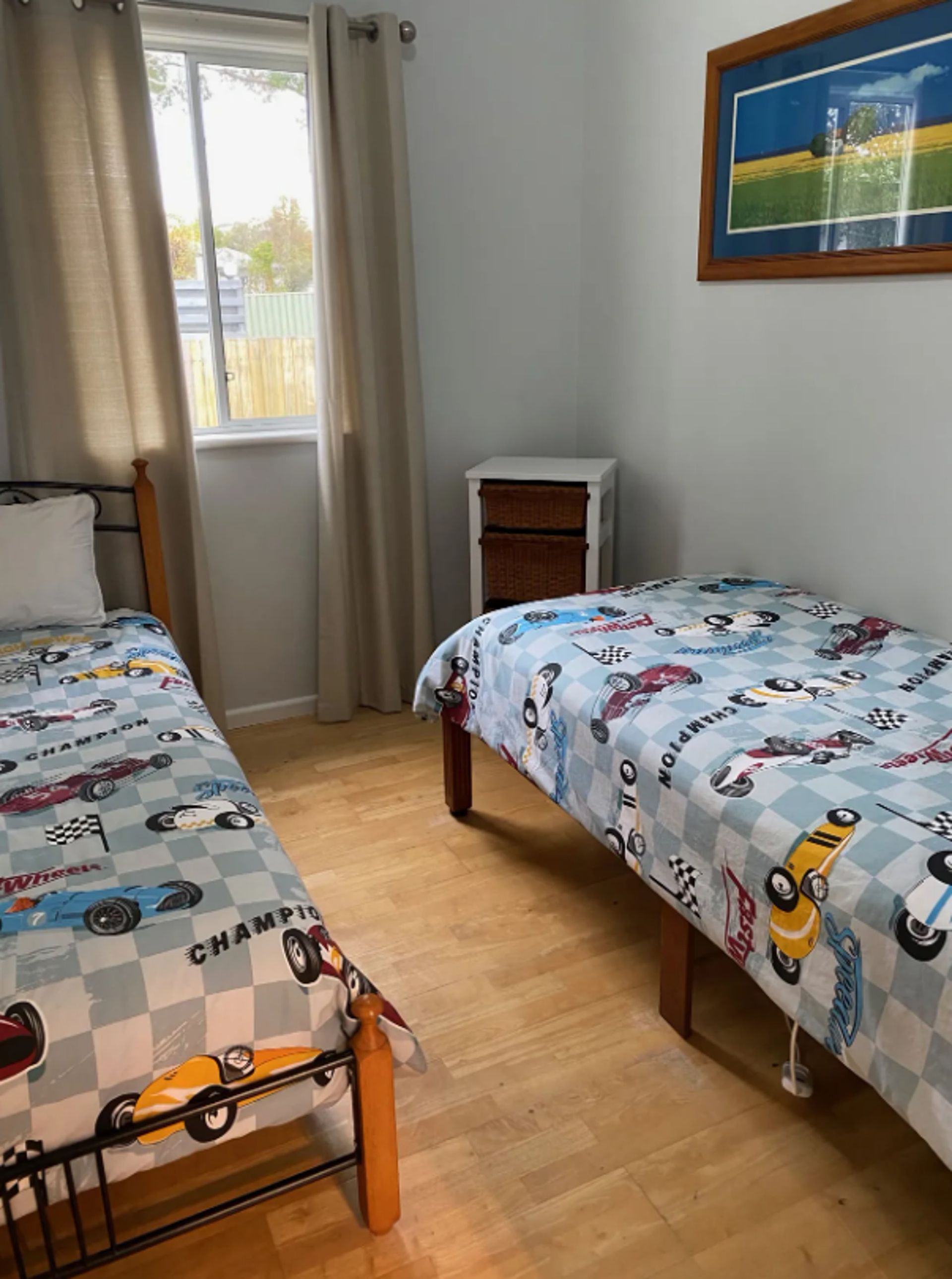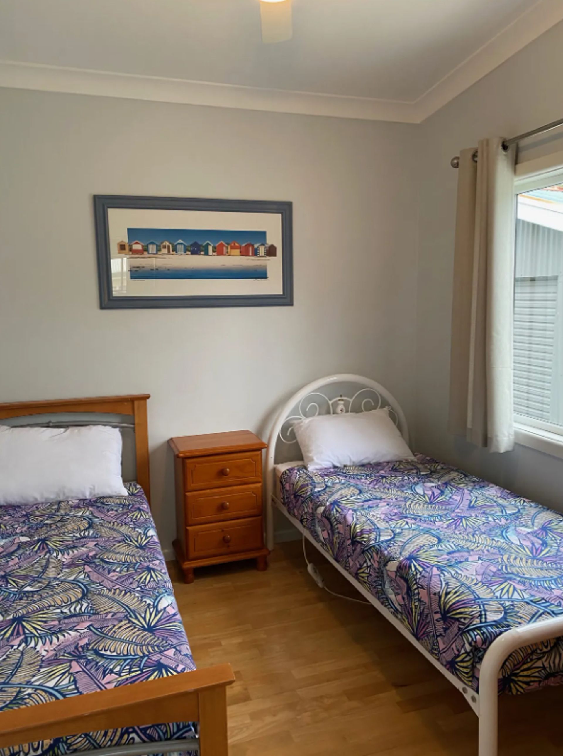 - Bed 2: Queen bed with a small TV, ceiling fan and free standing wardrobe