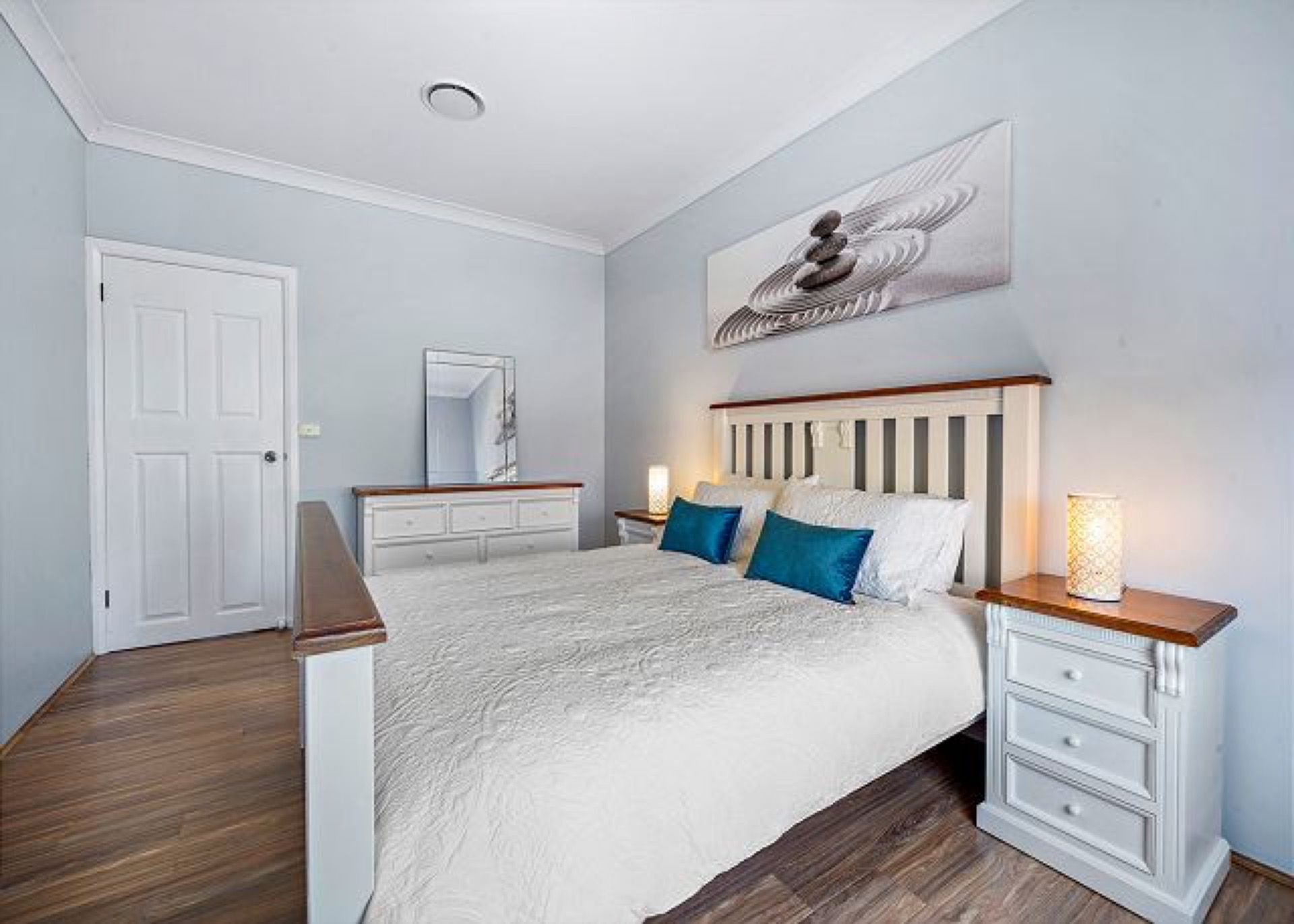 - Bed 1: Queen bed with ducted air conditioning and freestanding wardrobe
